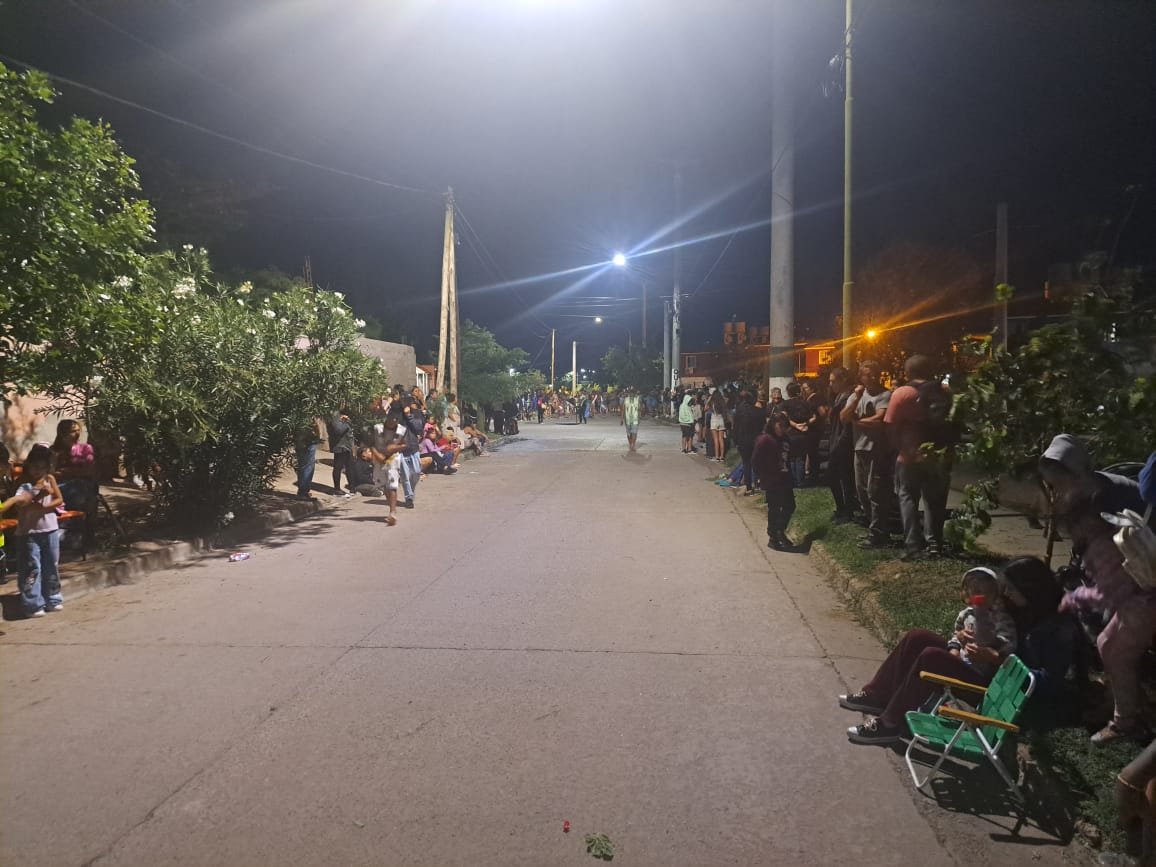 El corso se desarrolló sobre la calle principal del barrio, donde la misma se encontraba adornada e iluminada y hasta un escenario donde se hacía la presentación de las comparsas a su paso. Todo fue fiesta y alegría.