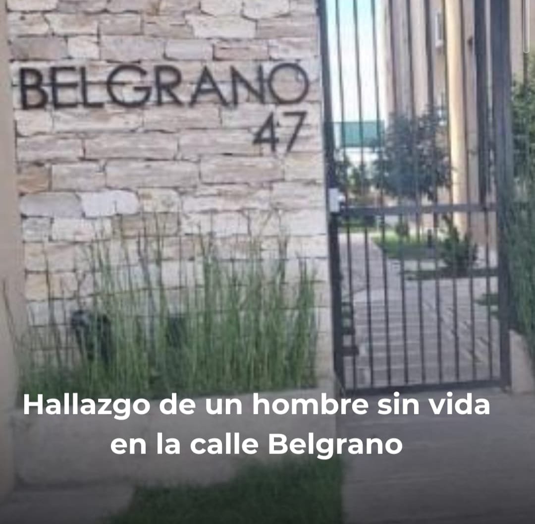 Un triste hallazgo tuvo lugar este viernes, cerca de las 5:00, cuando autoridades locales fueron alertadas sobre la presencia de un hombre sin signos vitales en un complejo de departamentos ubicado en la calle Belgrano al 47, a pocos metros de la avenida Sarmiento.