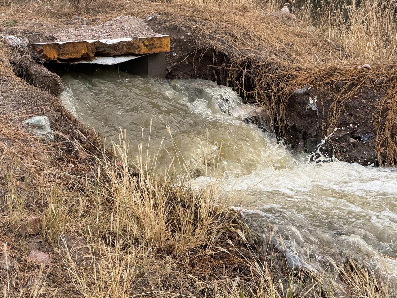 Los desbordes corren a lo largo de la vieja ruta a San Juan (que también está lleno de basurales) e invaden a numerosos campos privados.