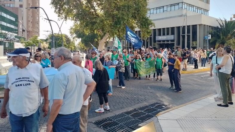 Los jubilados volvieron a manifestarse este miércoles por las calles céntricas de la ciudad de San Luis en contra del ajuste y de la represión que aplica el gobierno nacional. La convocatoria fue en el edificio del Correo Argentino a las 17, y cerca de las 18 empezó la marcha que recorrió la plaza Pringles.