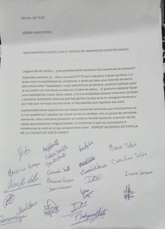 La alegría por la entrega de nuevas viviendas sociales en Justo Daract se vio empañada por una ola de indignación vecinal. Un numeroso grupo de familias decidió romper el silencio y denunciar públicamente lo que consideran un proceso plagado de injusticias y falta de transparencia. Según el reclamo formal presentado ante las autoridades, el sorteo habría beneficiado a personas que ya cuentan con una casa propia, que han construido recientemente o que poseen terrenos, una situación que califican como un insulto para quienes llevan años esperando una solución habitacional real.