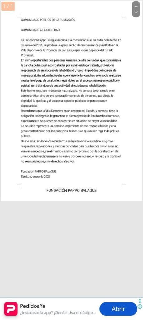 Lo que debería ser un espacio de integración y derecho para todos los puntanos se ha convertido en el escenario de un hecho vergonzoso que expone las falencias del Estado provincial. La Fundación Pappo Balague denunció públicamente un grave episodio de discriminación y maltrato ocurrido el pasado 17 de enero en la Villa Deportiva de San Luis, un predio que depende directamente del Gobierno Provincial.
