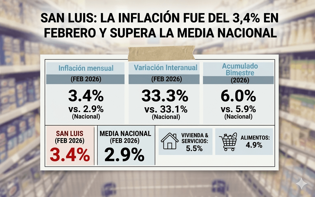 SAN LUIS: LA INFLACIÓN FUE DEL 3,4% EN FEBRERO Y SUPERA LA MEDIA NACIONAL