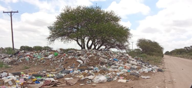 Los basurales son moneda corriente en esta localidad ubicada a la vera de la ruta 7, y por ejemplo se pueden ver como las cubiertas se acumulan en el campo de doma.