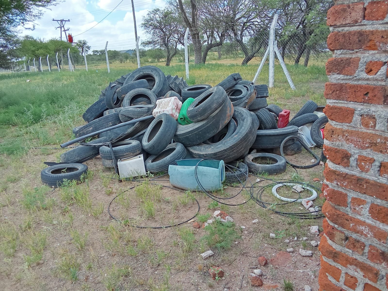 Los basurales son moneda corriente en esta localidad ubicada a la vera de la ruta 7, y por ejemplo se pueden ver como las cubiertas se acumulan en el campo de doma.
