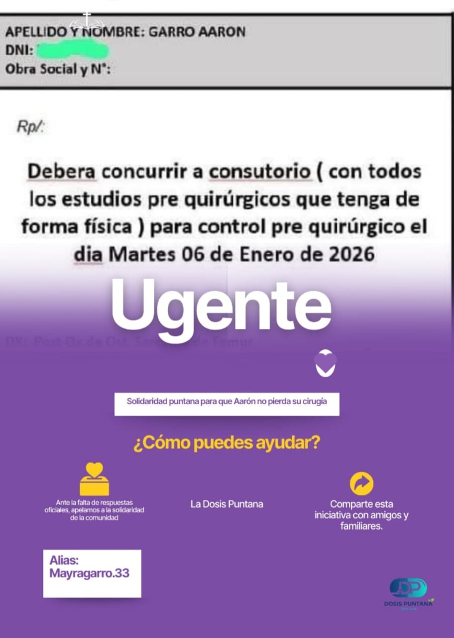 LLAMADO URGENTE A LA SOLIDARIDAD PUNTANA: ¡AYUDEMOS A AARÓN!
