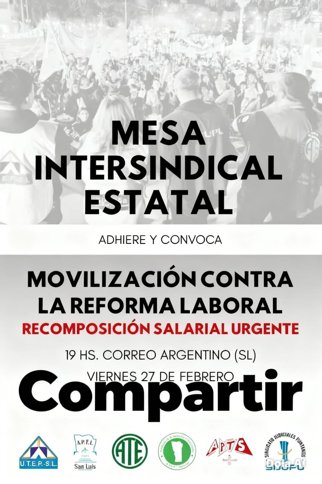 Esta convocatoria cuenta con el respaldo de los principales referentes del gremialismo local. Entre las organizaciones que adhieren y convocan se encuentran ATE, UTEP-SL, APTS, APEL, y el Sindicato Judiciales Puntanos, entre otros. Esta unión de fuerzas busca reclamar respuestas concretas por parte de las autoridades ante el impacto de las medidas económicas sobre los salarios y las condiciones laborales.