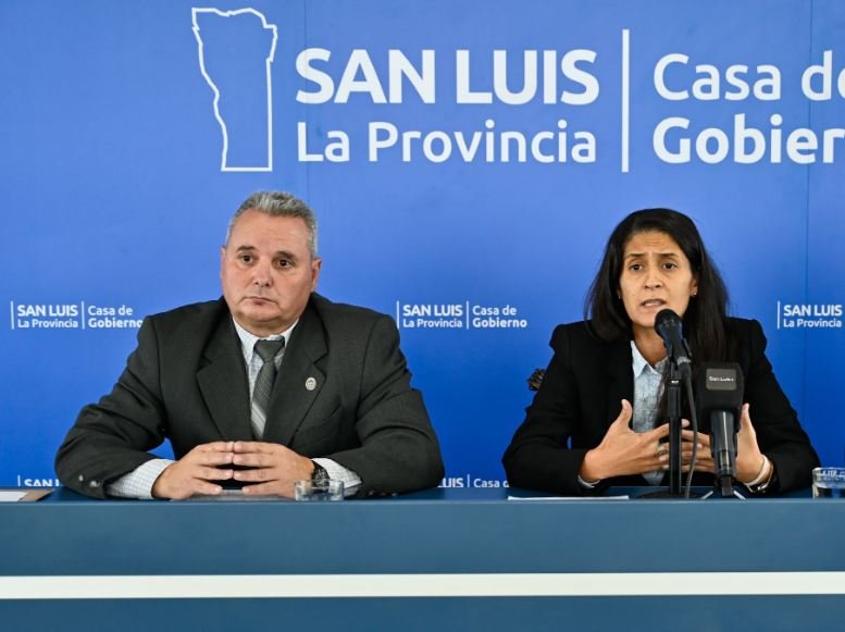 El jefe de la Policía de San Luis, Pablo Vieytes y la ministra de Seguridad, Nancy Sosa. Foto: ANSL.