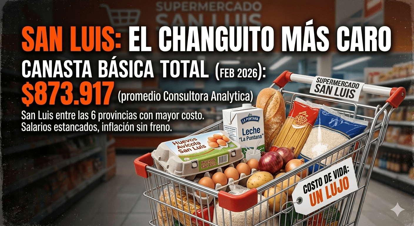 Un reciente informe de la consultora Analytica confirmó lo que las familias sienten cada vez que van al supermercado: San Luis es una de las seis provincias con la canasta básica más costosa de la Argentina. A fines de febrero, el costo promedio para no ser pobre en la provincia alcanzó los $873.917. Este dato revela que los precios locales se han disparado, superando incluso a regiones que históricamente tenían salarios mucho más altos.